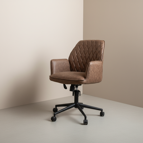 Industriële Draaibare Eetkamerstoel Stof Bruin Novan – 180° Draaibaar