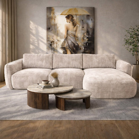 1.199,951.499,95Eenheid prijs /Niet beschikbaarHoekbank chaise longue beige structuurstof Dwayne - links