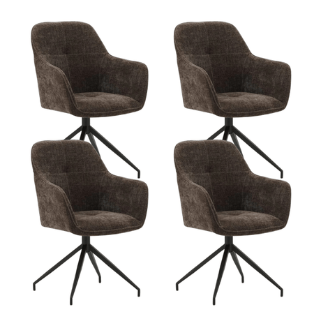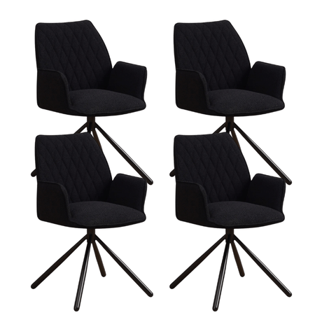 Set van 4 Draaibare Eetkamerstoelen Novan Zwart Chenille – 180° Draaibaar