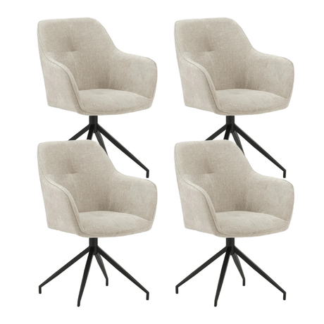519,80Eenheid prijs /Niet beschikbaarSet van 4 Draaibare Eetkamerstoelen Nela Chenille Crème - Met Armleuningen