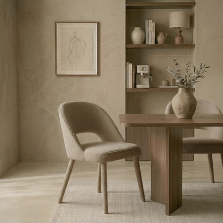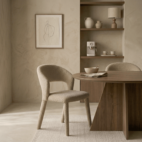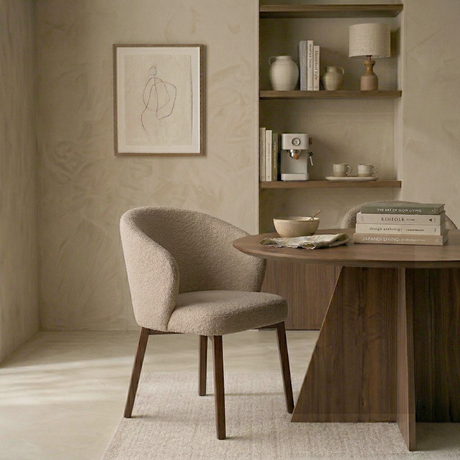79,95Eenheid prijs /Niet beschikbaarEetkamerstoel bouclé zandkleur Uma - walnootlook frame - Japandi