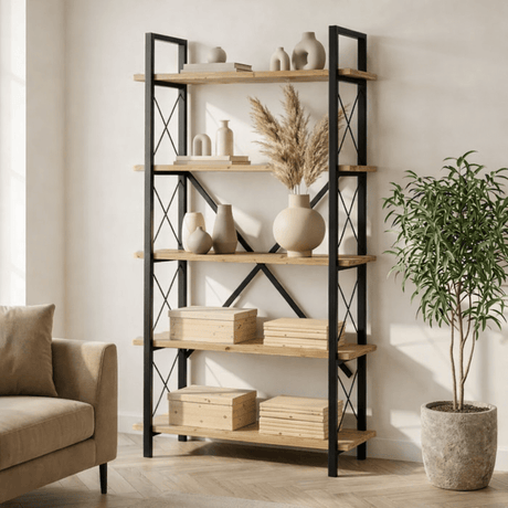 149,95Eenheid prijs /Niet beschikbaarIndustriële Boekenkast Ely Eiken Melamine - Zwart Frame - 180x90 cm