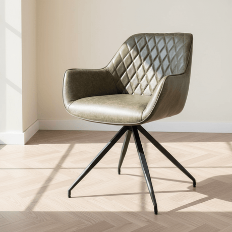 Van 449,95Eenheid prijs /Niet beschikbaarIndustriële Eetkamerstoel Groen Gian - Kunstleer - Ruitpatroon - Met Armleuningen