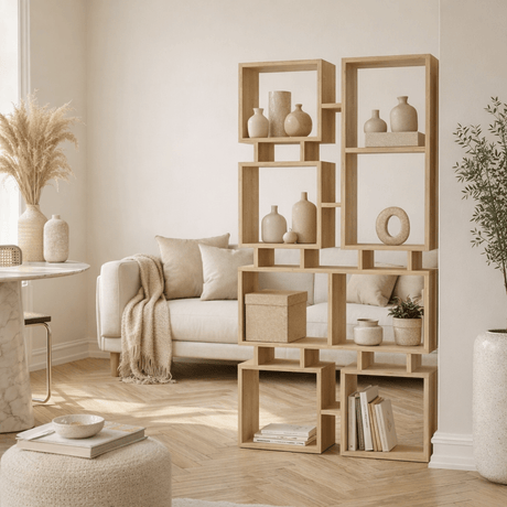 249,95299,95Prix unitaire /IndisponibleBibliothèque Jedda White Oak Melamine 79x190x32 cm