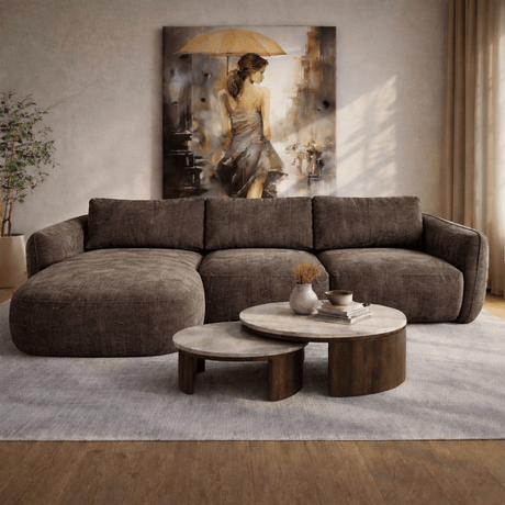 1.199,951.499,95Prix unitaire /IndisponibleCanapé d'angle chaise longue moka brun tissu structuré Dwayne - gauche