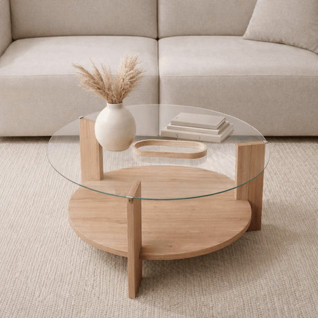 239,95Prix unitaire /IndisponibleTable basse ronde en verre trempé - Mélaminé chêne - 90 cm - Liya