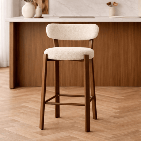 99,95Prix unitaire /IndisponibleTabouret de bar bouclé couleur sable Aiko - structure aspect noyer - Japandi
