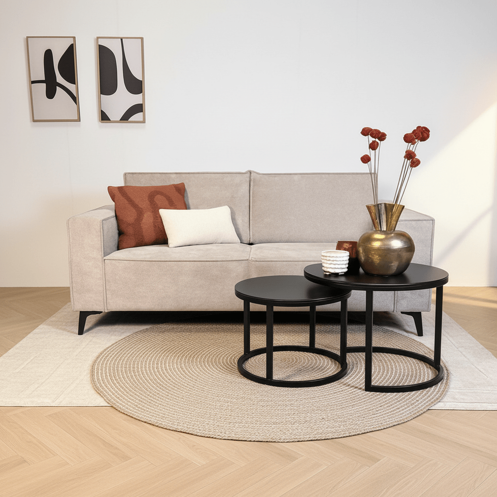 Le 2 places Yara est recouvert d'un tissu chenille doux et durable de couleur anthracite. La chenille est connue pour sa sensation confortable et luxueuse, mais surtout pour sa durabilité. Le tissu donne au canapé une texture riche et douce et une finition légèrement brillante qui ajoute une touche de luxe à votre intérieur.