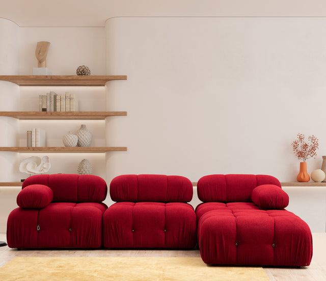 Canapé d'angle modulaire XXL Bubble avec pouf - velours rouge