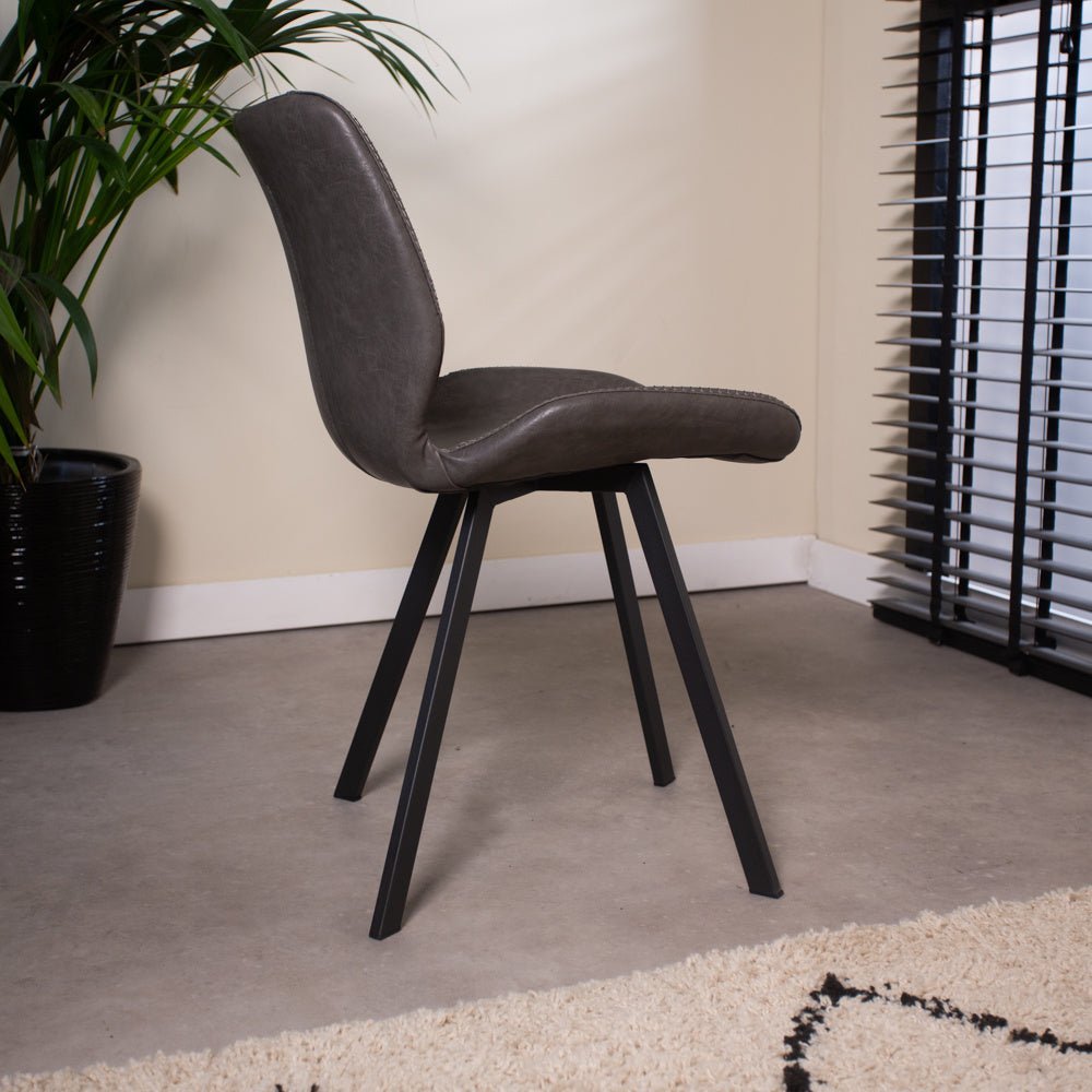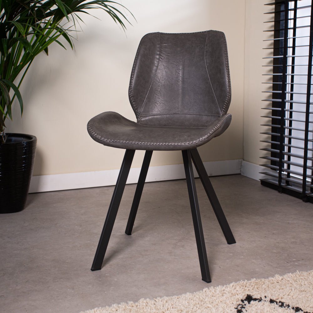 Chaise de salle à manger industrielle anthracite Barry en simili cuir - Sans accoudoirs