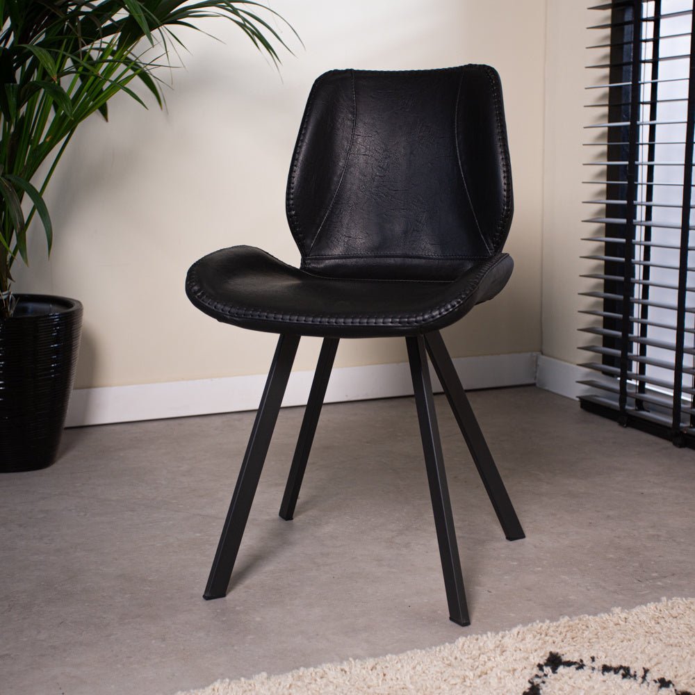 Description et spécifications de Ensemble de 4 Chaises de Salle à Manger Industrielles Noires en Similicuir Barry - Sans Accoudoirs