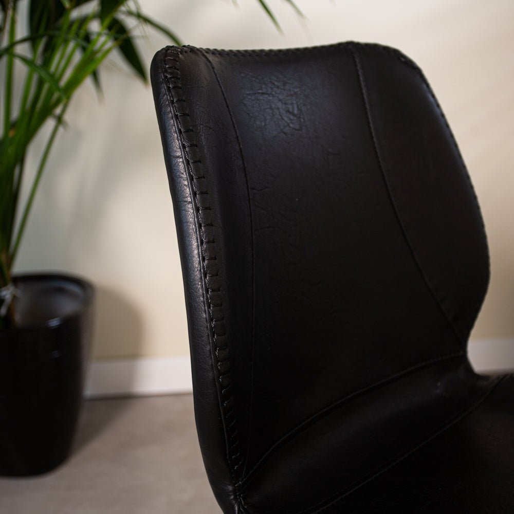 Le cadre de la chaise de salle à manger Barry est en acier noir laqué, ce qui, combiné à l'assise en simili cuir PU élancée, en fait un incontournable chic et robuste. Sous ce produit, il y a des patins de sol qui protègent le stratifié contre les rayures. Des feutres sont fournis pour protéger les autres sols contre les rayures.