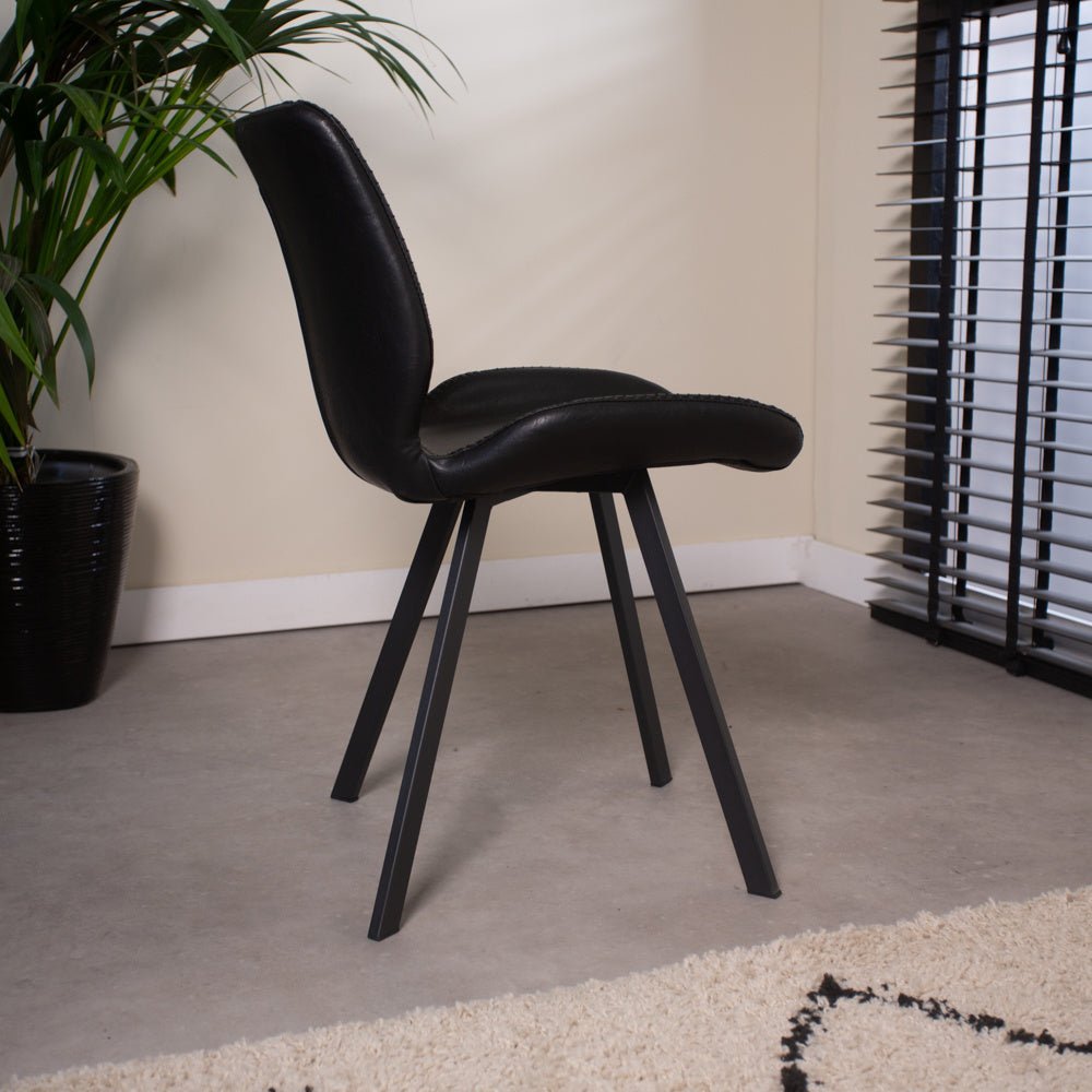 Ensemble de 4 Chaises de Salle à Manger Industrielles Noires en Similicuir Barry - Sans Accoudoirs