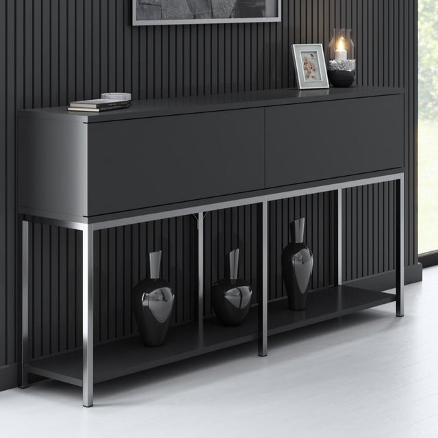 Commode moderne anthracite Lord 150x30x80 - Cadre argenté - Deux compartiments