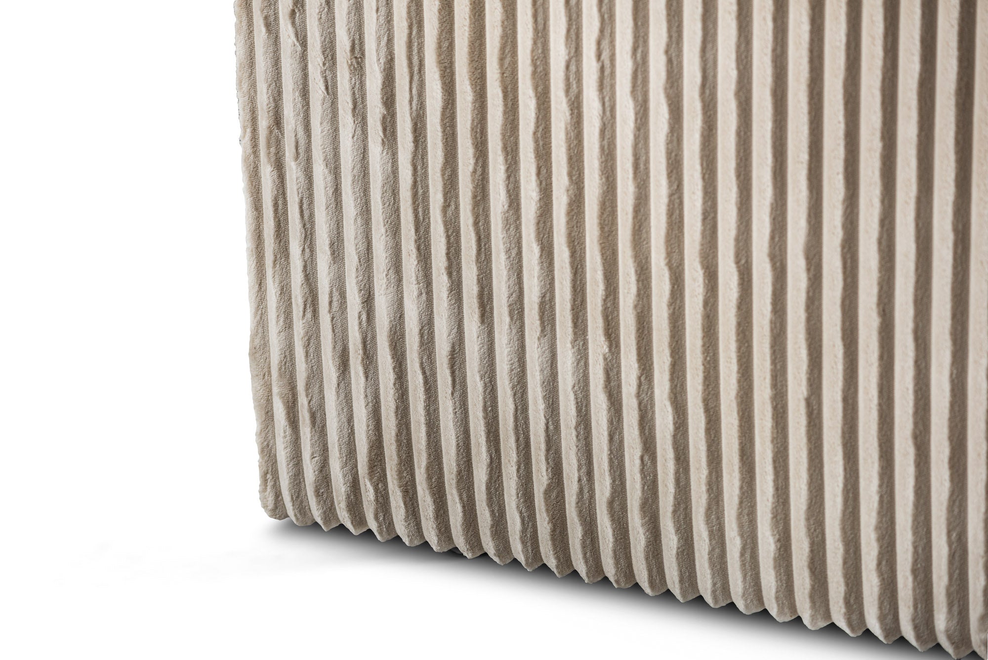 Le chaise longue de forme ronde peut être placée à gauche ou à droite et apporte un design moderne et scandinave, ce qui fait que ce canapé d'angle s'intègre parfaitement dans un intérieur contemporain. Le velours côtelé dans la couleur tendance beige donne au canapé une apparence luxueuse et est également doux et confortable au toucher.