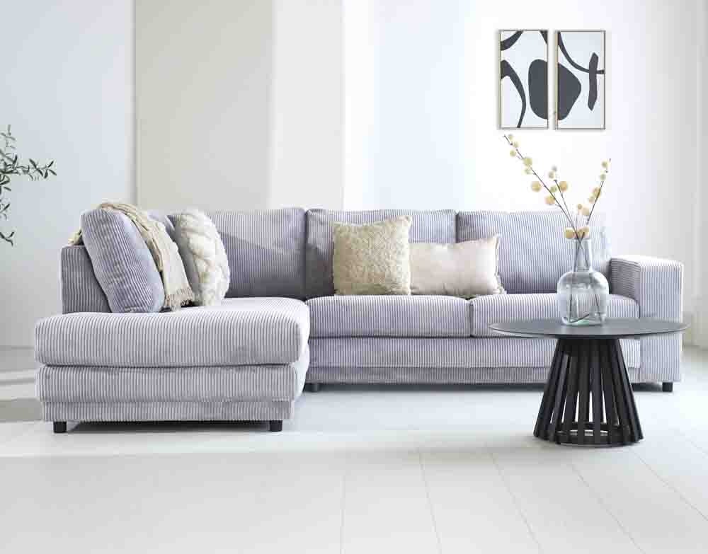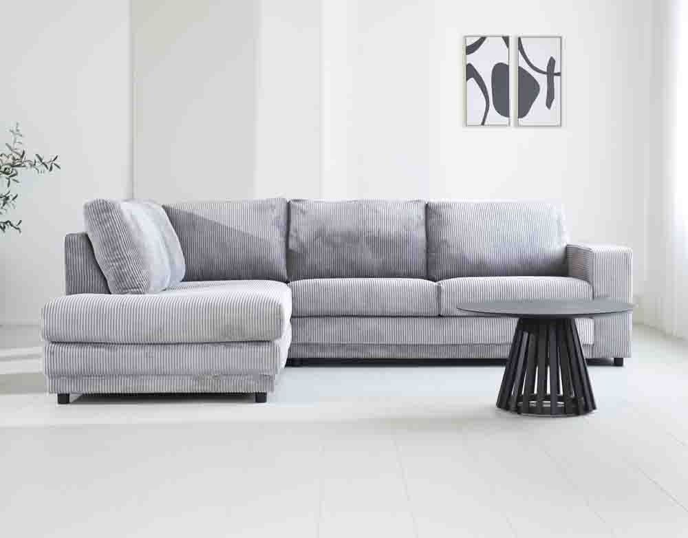 Canapé d'angle en tissu rayé gris clair, canapé-lit Gabi - gauche