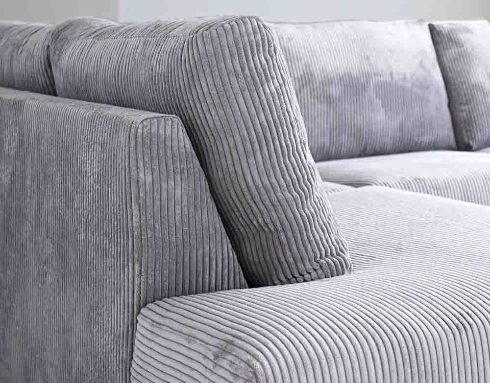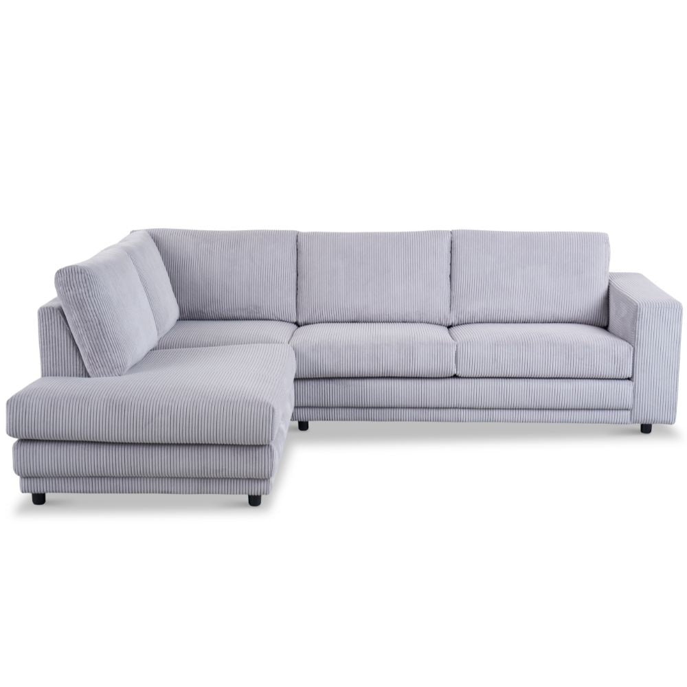 Le canapé d'angle moderne Gabi est fait de tissu côtelé et a des pieds en métal. Ce canapé d'angle résistant à l'usure offre un confort d'assise grâce à ses coussins larges et doux. Vous souhaitez vous détendre confortablement après une longue journée de travail ? Optez pour le canapé d'angle Gabi !