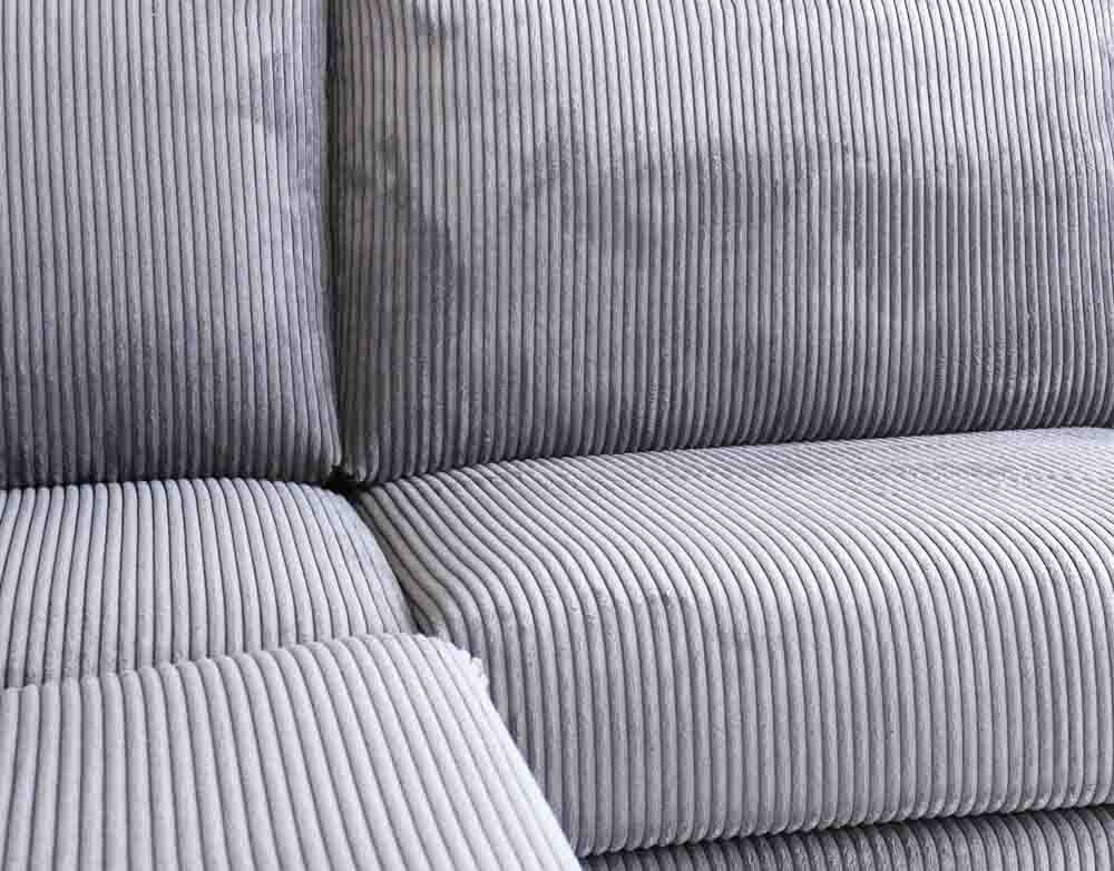 Description et spécifications de Canapé d'angle en tissu rayé gris clair, canapé-lit Gabi - gauche