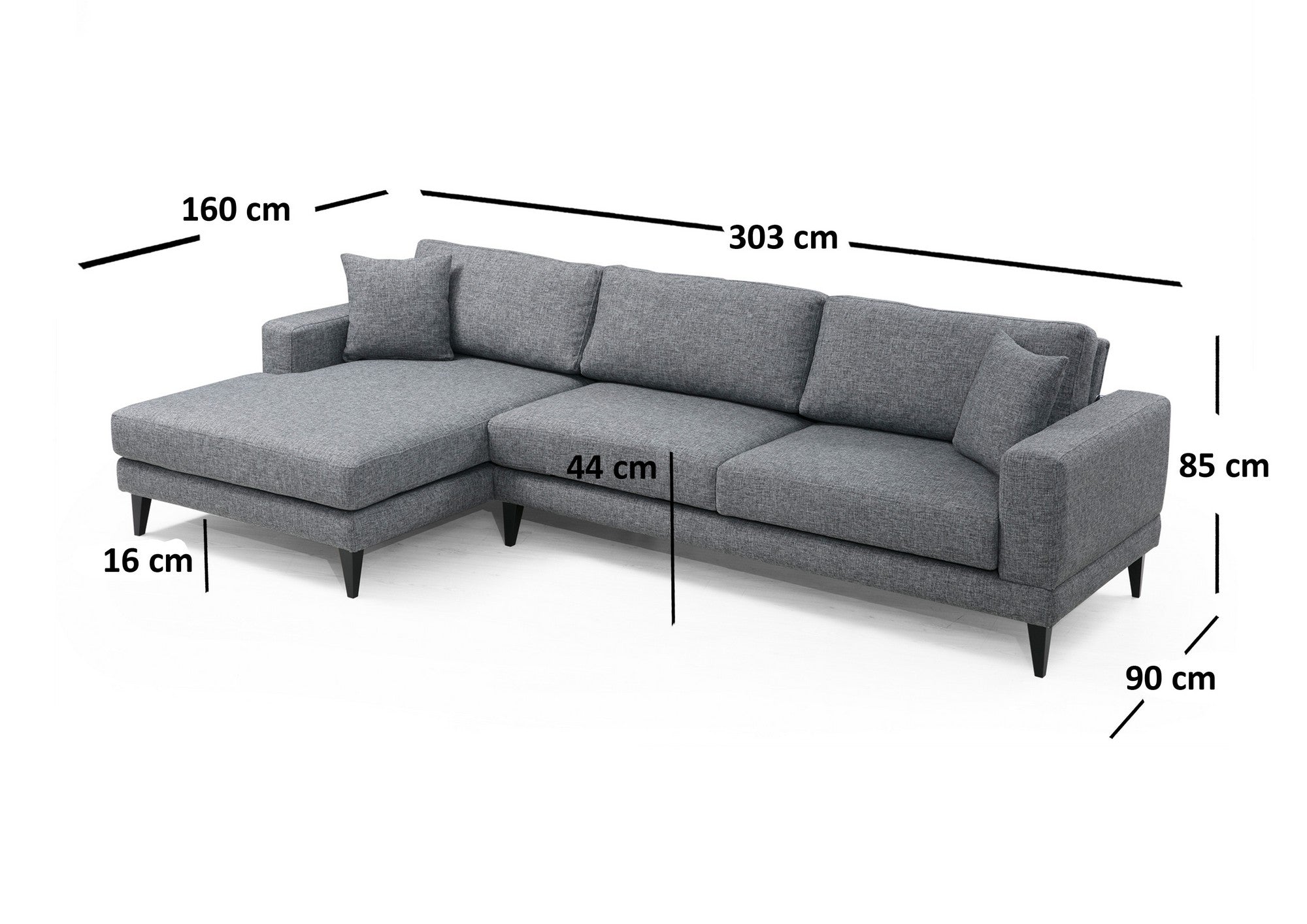 Description et spécifications de Canapé d'angle avec fonction couchage gauche Nordic gris foncé