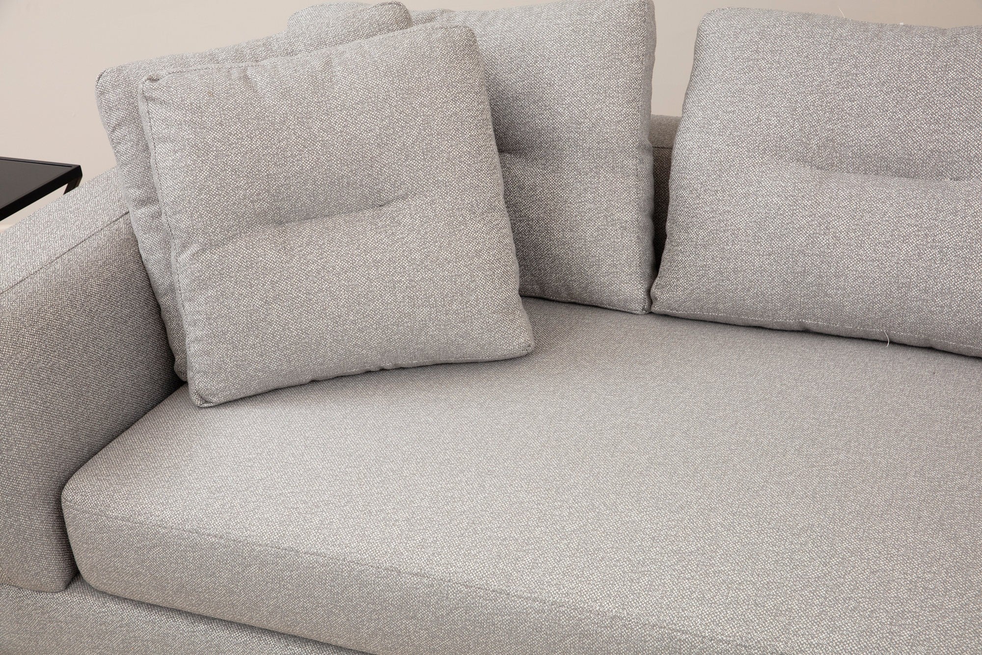 Découvrez notre magnifique canapé d'angle, le complément parfait pour tout espace de vie. Avec son design épuré et son apparence luxueuse, ce canapé rehaussera immédiatement le style et le confort de votre maison.