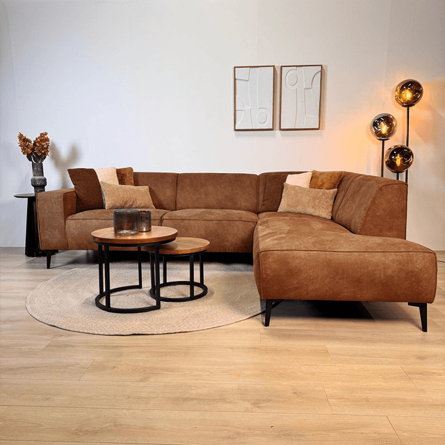 Le canapé d'angle Brisbane est un magnifique canapé d'angle pour le salon. Le canapé est recouvert de cuir et offre une assise confortable. Les coussins de dossier et l'assise sont fixés et se sentent confortables. Comme le canapé d'angle mesure pas moins de 275 cm de large, il peut accueillir suffisamment de personnes. Le canapé d'angle repose sur de hauts pieds métalliques et a un aspect industriel. Le Brisbane est un ajout précieux au salon. Ce canapé d'angle est également disponible avec la méridienne de l'autre côté et en anthracite.