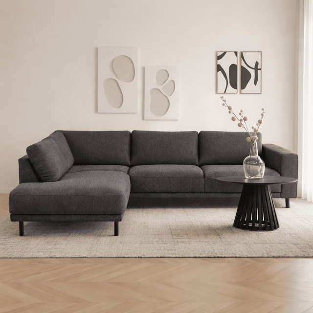Canapé d'angle moderne 3 places gauche en tissu anthracite Aniko avec repose-lèvres 240x197x78 cm