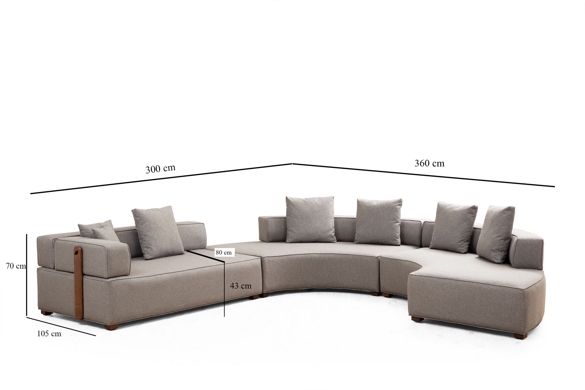 Avec ses dimensions généreuses de 360 x 300 cm, notre canapé d'angle offre suffisamment d'espace assis pour vous et vos invités. Les 7 coussins fournis, fabriqués à partir d'un mélange de mousse découpée et de mousse en silicone, ajoutent une couche supplémentaire de confort et de style. Le tissu nettoyable à sec facilite l'entretien, garantissant que votre canapé reste frais et propre pendant des années.