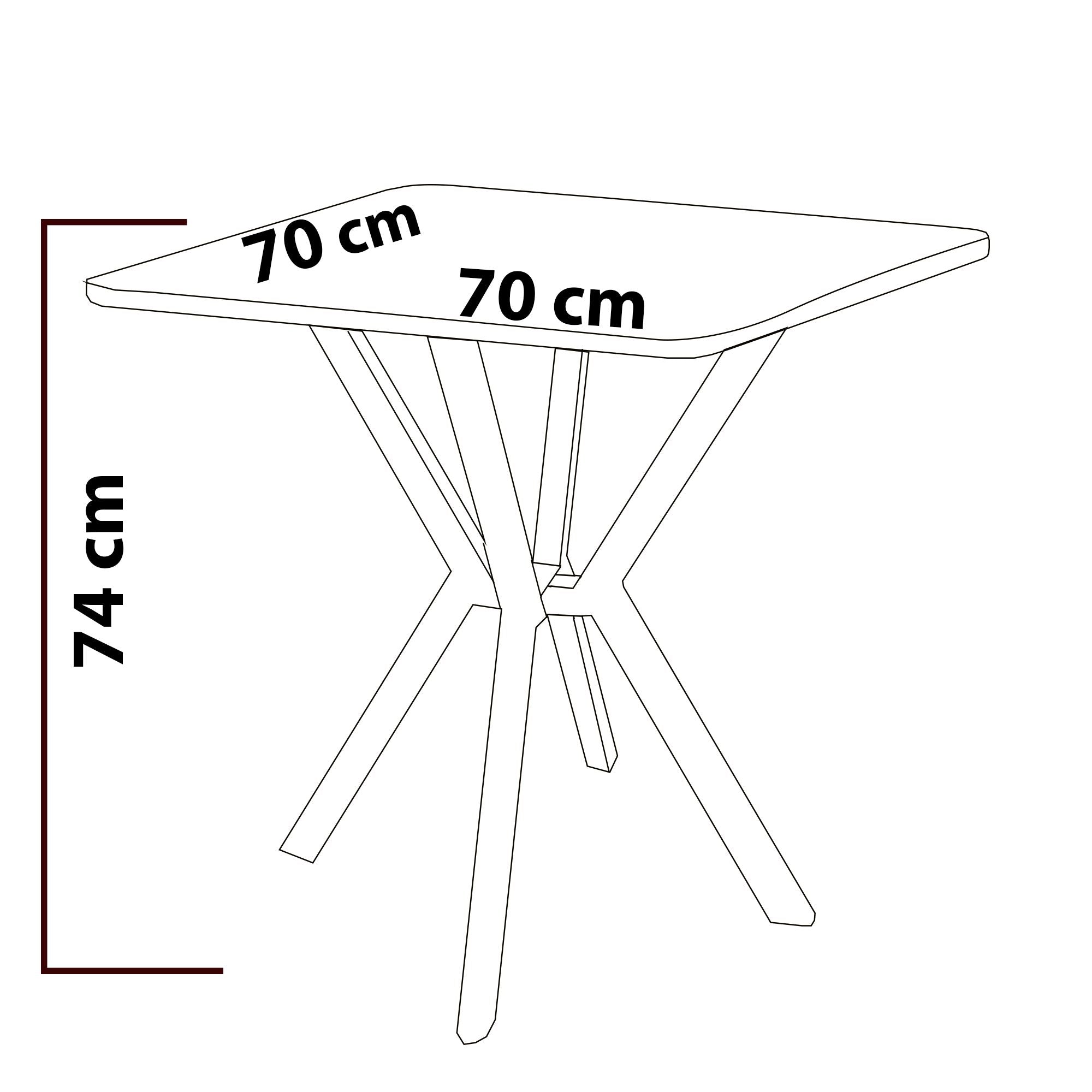 Met een afmeting van 70x70 cm is deze tafel ideaal voor kleinere ruimtes, zoals een appartement, keuken of eetkamer. Perfect voor twee personen, zonder in te leveren op comfort of uitstraling.