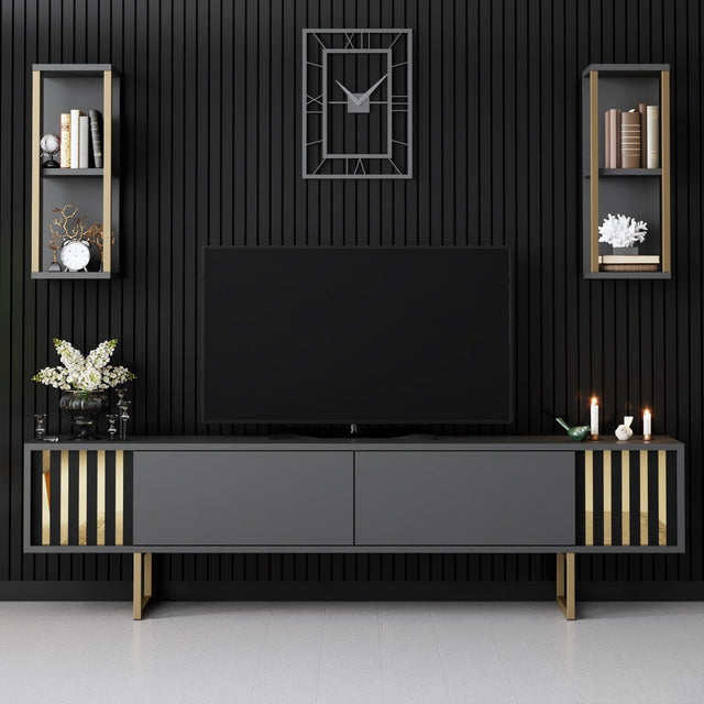 Ensemble de meubles télévisés Gold Ligne anthracite Black Mélamine 180x48x30 cm