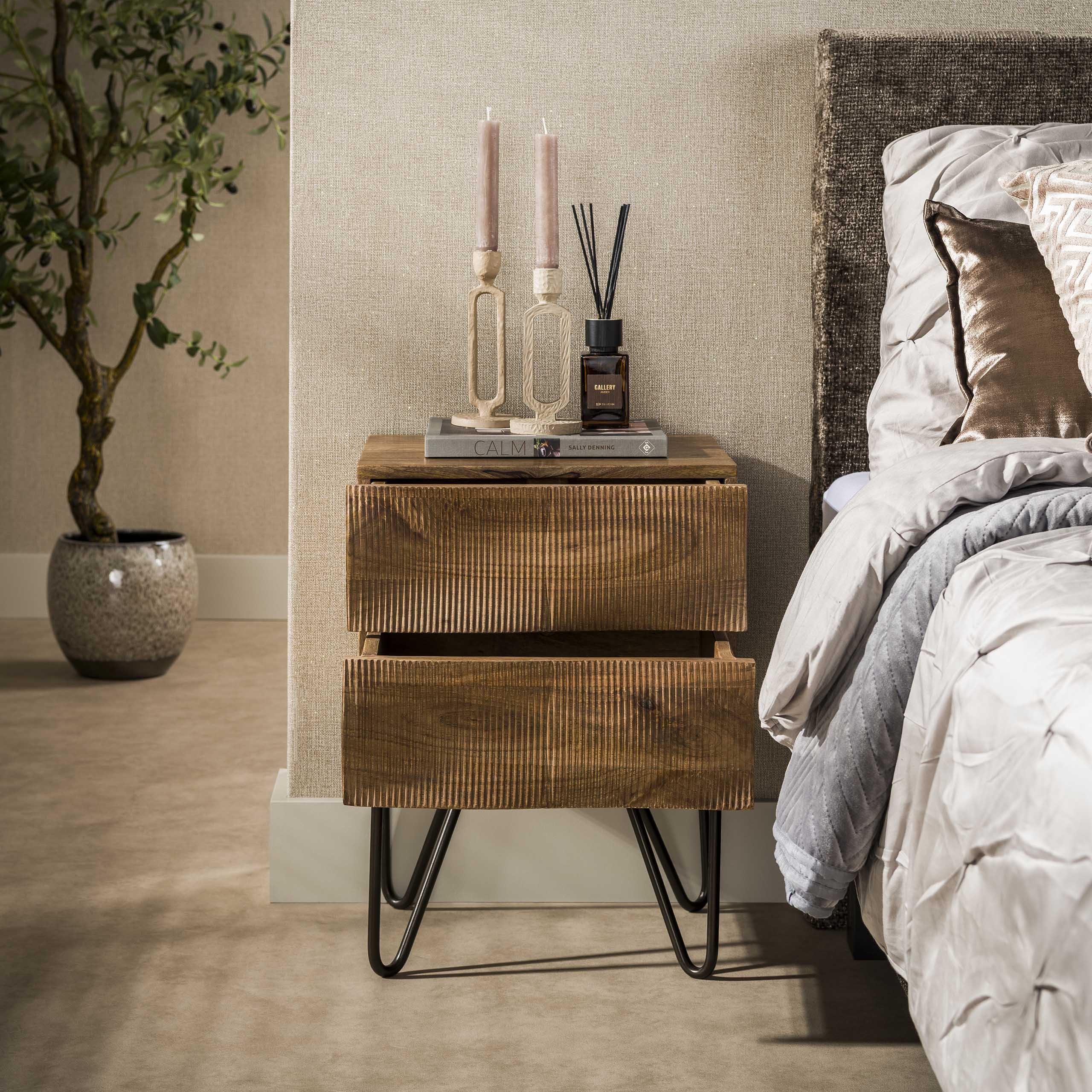 Nachtkastje 2 lades zandkleur mangohout Oona
