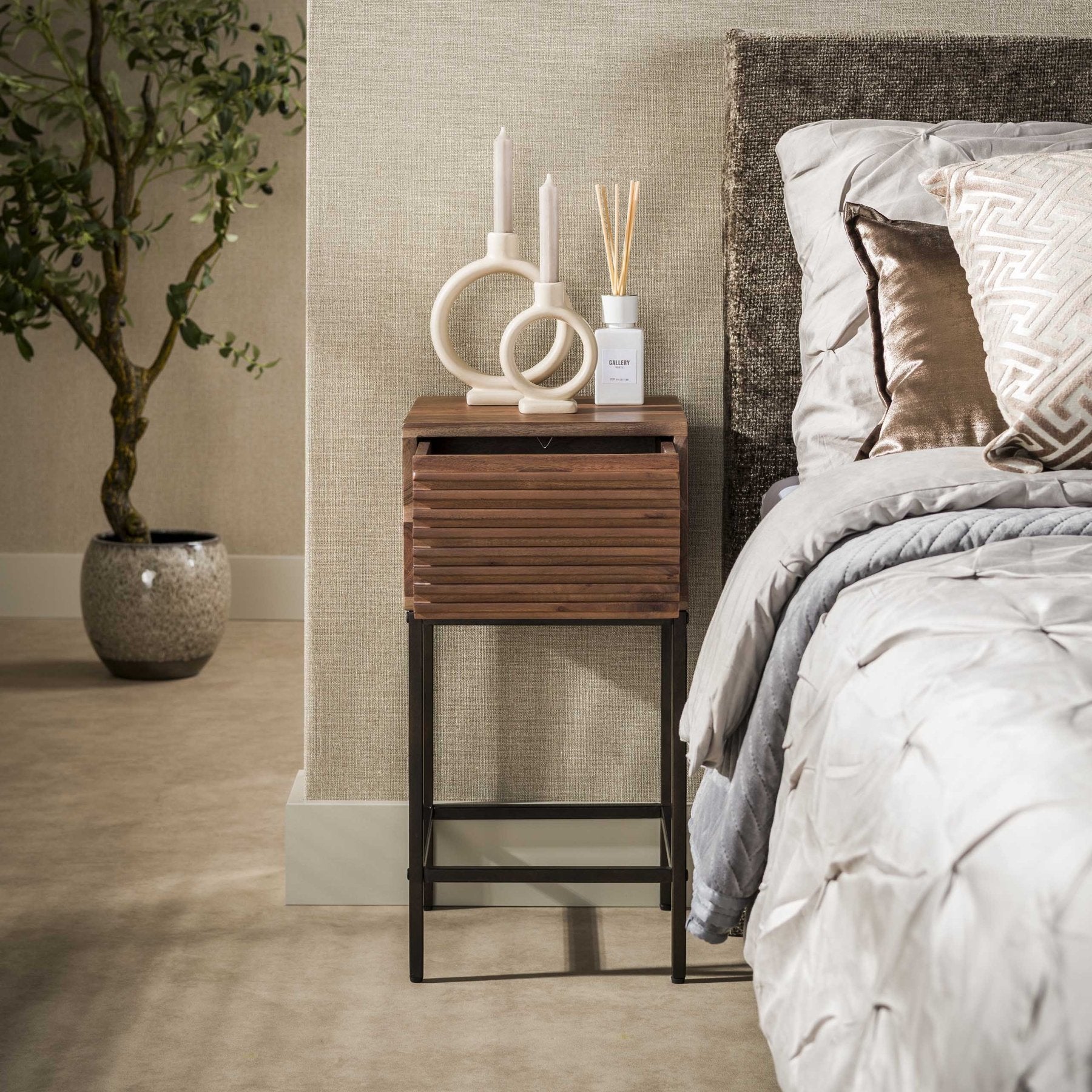Nachtkastje met 1 lade bruin acaciahout Lani
