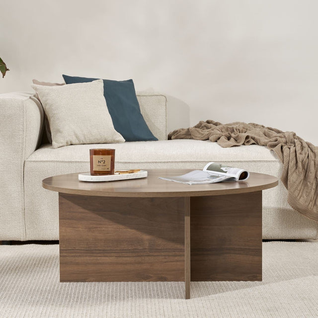 Maak kennis met deze elegante koffietafel die warmte en functionaliteit in uw woonkamer brengt. Het strakke ontwerp en de warme walnootkleur voegen direct een vleugje luxe toe aan elk interieur. Dankzij een melamine gecoate plaat is de tafel duurzaam en onderhoudsvriendelijk, ideaal voor dagelijks gebruik in gezelschap.