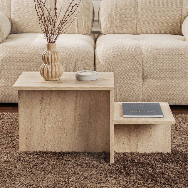 Table basse beige effet marbre mélamine Eterna