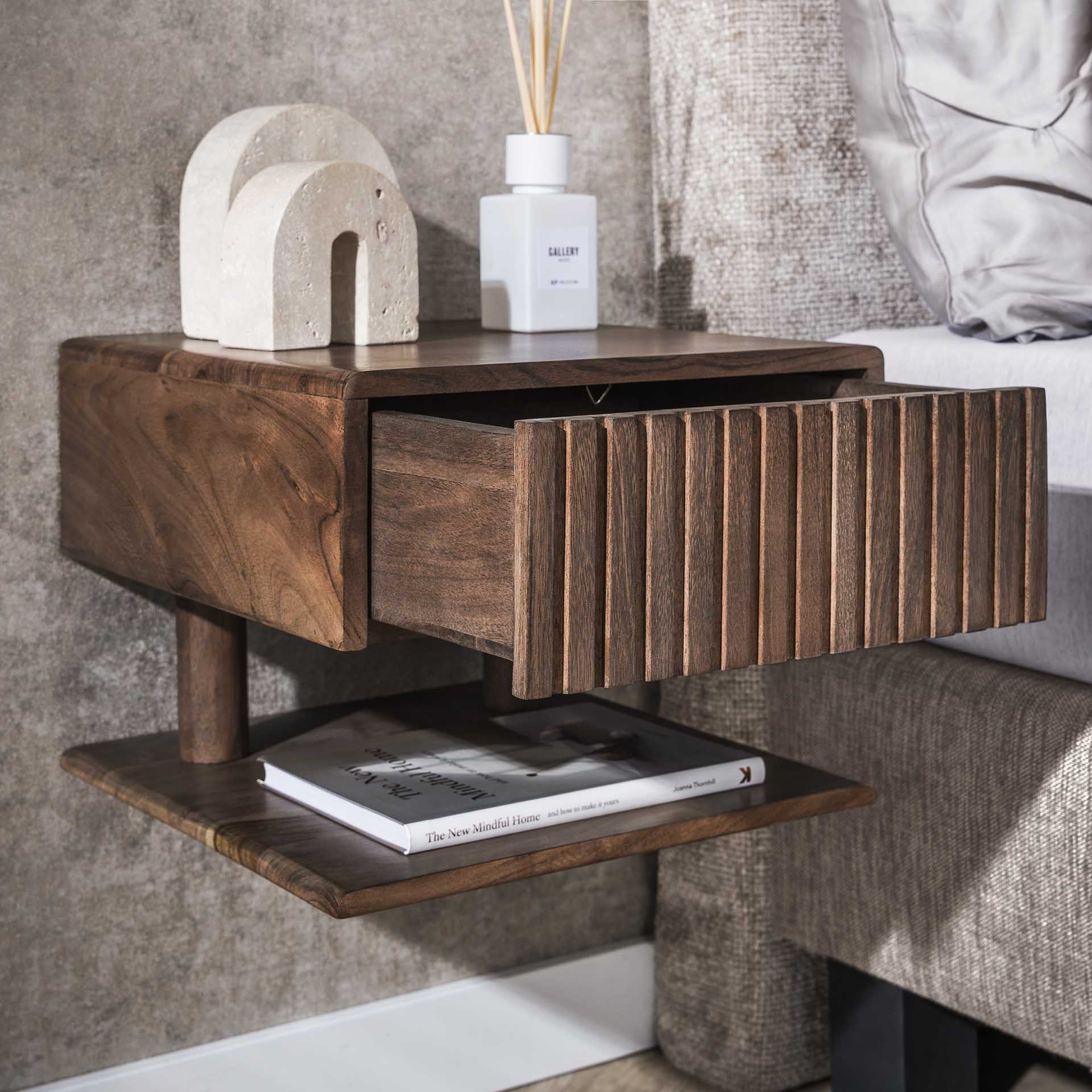 Table de nuit flottant Acacia Drift Brown – 1 tiroir 35 cm