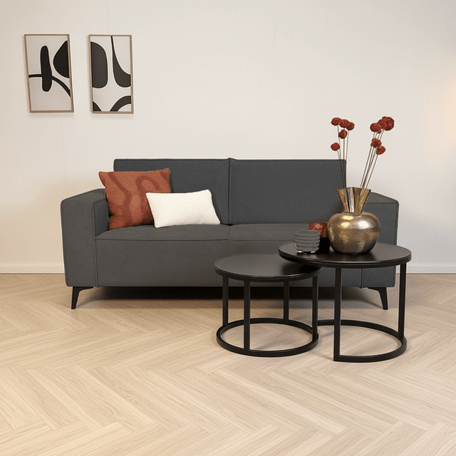 2-zits Yara is bekleed met een zachte en duurzame chenille stof in een antraciet kleur. Chenille staat bekent om het comfortabele en luxe gevoel, maar bovenal de duurzaamheid. De stof geeft de bank een rijke, zachte textuur en een licht glanzende afwerking die een vleugje luxe toevoegt aan je interieur.