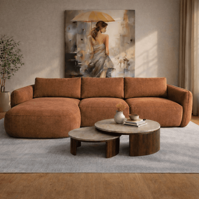 Hoekbank chaise longue koper structuurstof Dwayne - links