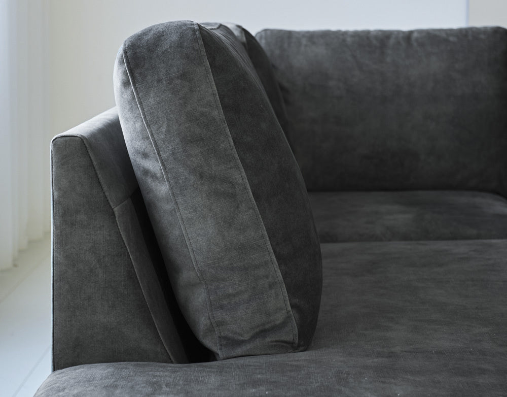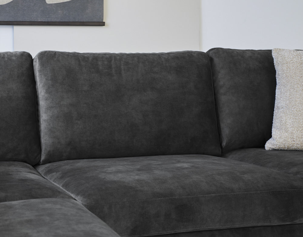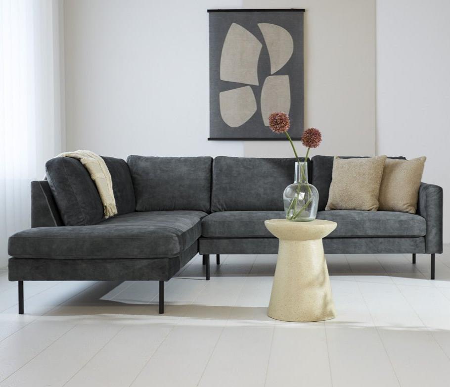 Hoekbank antraciet velvet hoge poten Gaya - links