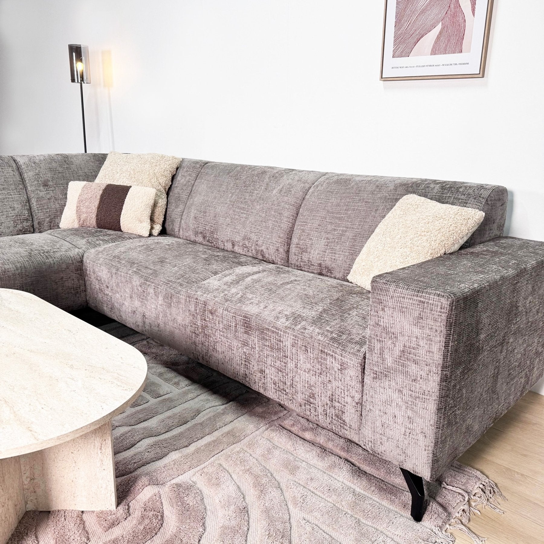 Hoekbank met chaise longue taupe chenille stof Manon - links