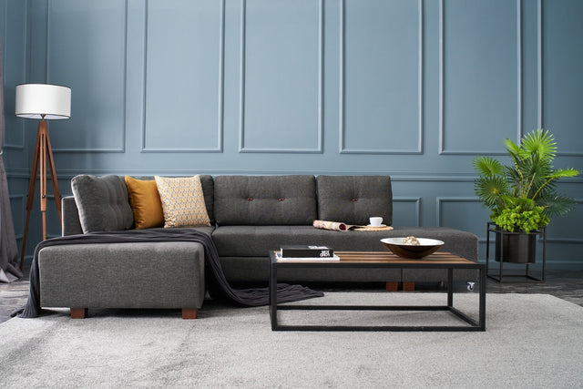 Met zijn strakke en moderne ontwerp past onze hoekslaapbank moeiteloos in elk interieur, of het nu gaat om een moderne of scandinavisch geïnspireerde ruimte. De effen antracietkleur voegt een vleugje raffinement toe, terwijl het vernieuwende concept een frisse en unieke sfeer in huis brengt.