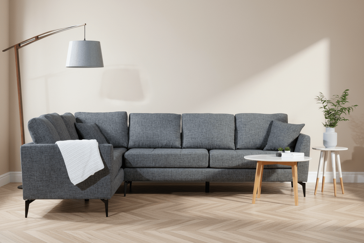 Met zijn strakke en moderne ontwerp is onze hoekbank de perfecte aanvulling voor elk huis. De donkergrijze kleur voegt een vleugje verfijning toe, terwijl de matzwarte metalen poten zorgen voor een industrieel randje. Dit effen kleur - antraciet concept zal de stijl van je woonkamer zeker een boost geven.