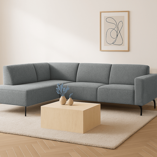 Beschrijving en specificaties van Industriële hoekbank stof grijs Verona links