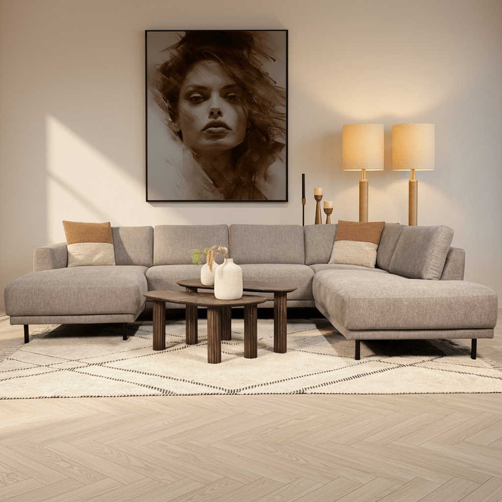 De Aniko U-vorm hoekbank is perfect voor wie groots wil wonen. Combineer luxe, comfort en modern design in één statementstuk voor je interieur.