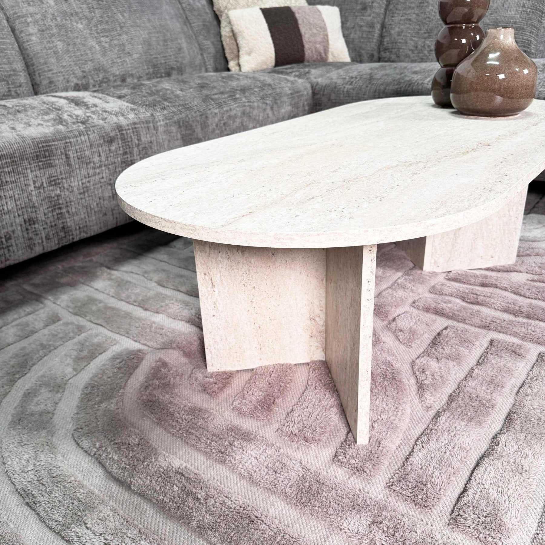 Ovale Salontafel Travertin look Sabla - 119x60