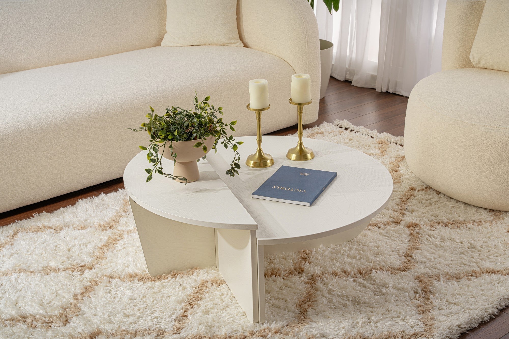 Transformeer je leefruimte met onze prachtige houten witte salontafel. Dit elegante meubelstuk is niet zomaar een meubelstuk, maar een statement van stijl en verfijning. Het slanke ontwerp en de strakke lijnen geven elke kamer direct een hoger aanzien en creëren een warme en uitnodigende sfeer voor jou en je gasten.