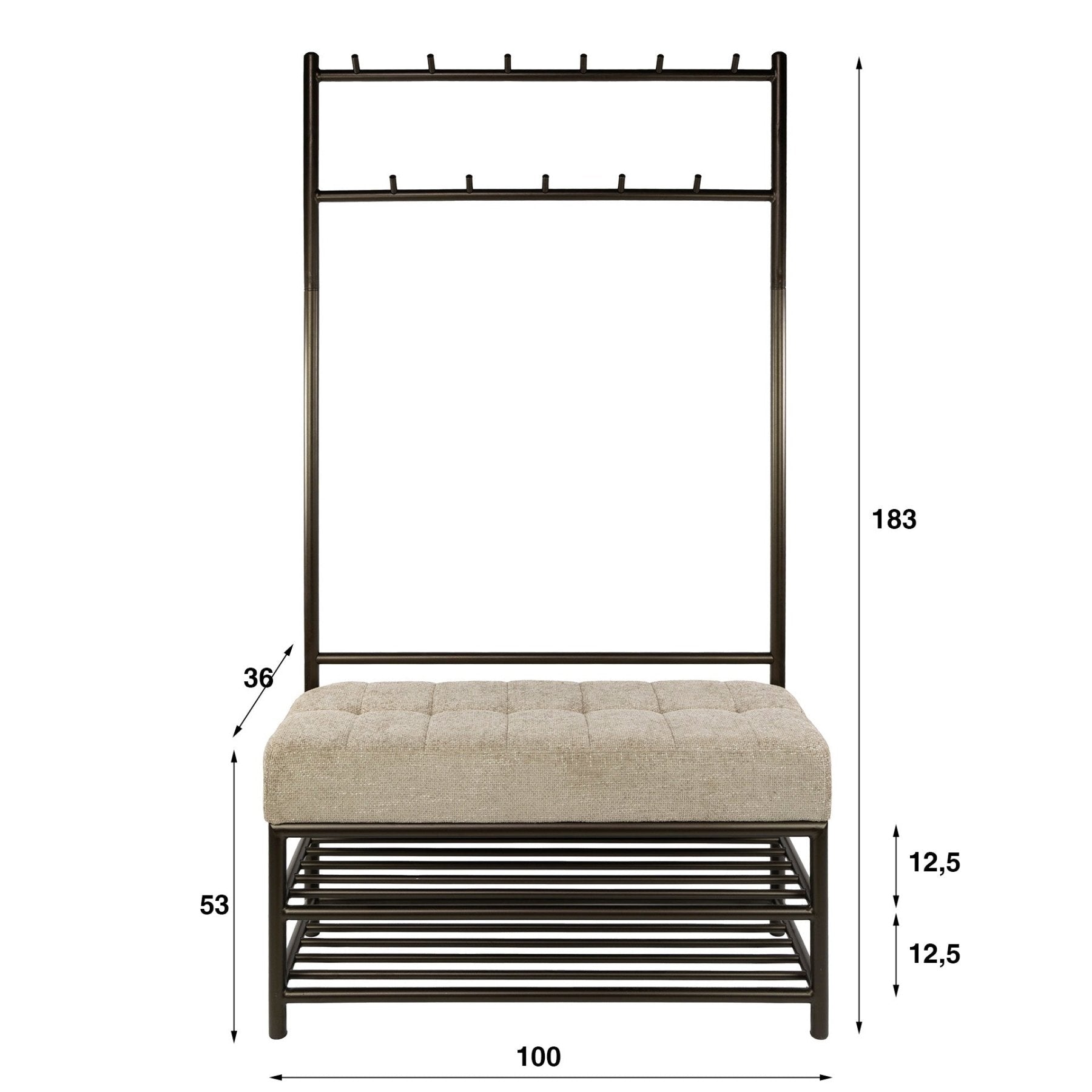 Dit model is ontworpen met aandacht voor gebruiksgemak: een stevige zitting, voldoende hoogte om jassen overzichtelijk op te hangen en een robuuste afwerking die dagelijks gebruik aankan. De bank is geschikt voor alle seizoenen en biedt een nette, georganiseerde uitstraling zonder te veel ruimte in te nemen.