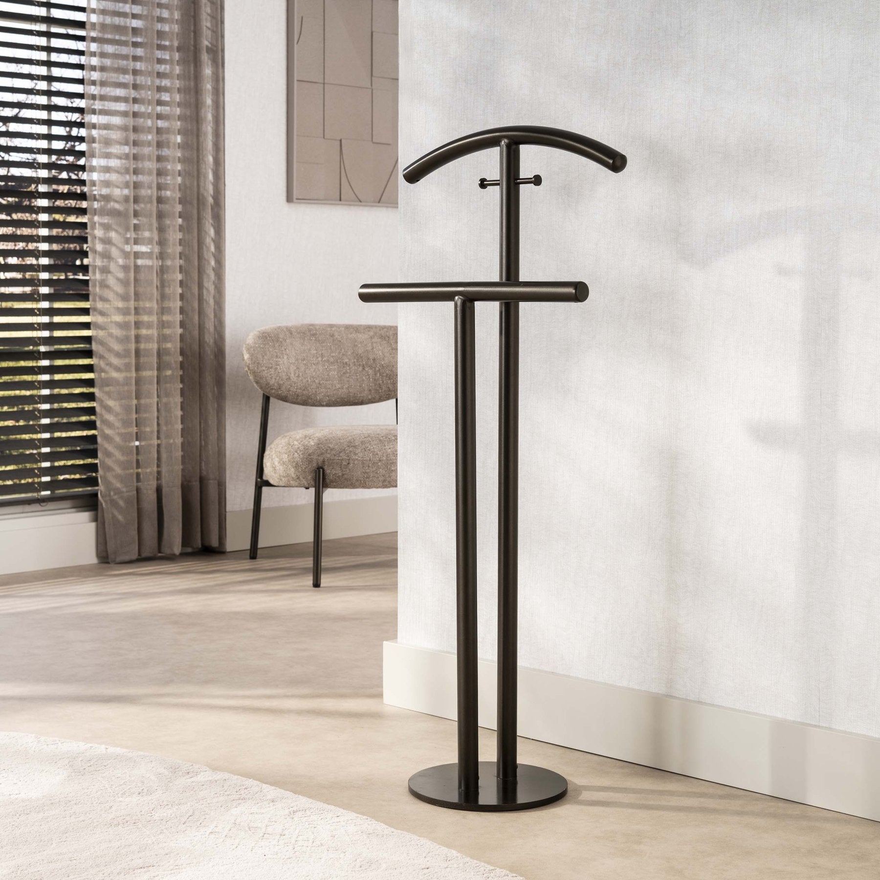 De Senna staande kapstok in Drift brown is een elegante toevoeging aan elke hal of slaapkamer. Met zijn slanke profiel en warme Drift brown kleur combineert deze kapstok praktische opbergmogelijkheden met een tijdloos decoratief accent. Ontworpen voor alle seizoenen, past hij zowel in moderne als klassieke interieurs en neemt hij weinig vloeroppervlak in beslag.