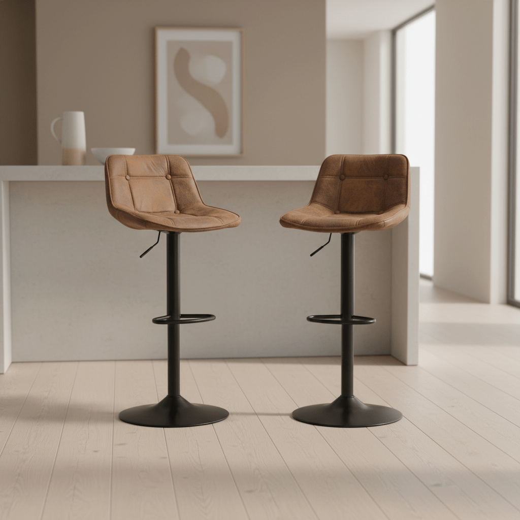 Set van 2 Industriële Draaibare Barkrukken Bruin Microvezel Stof Keston - Verstelbaar