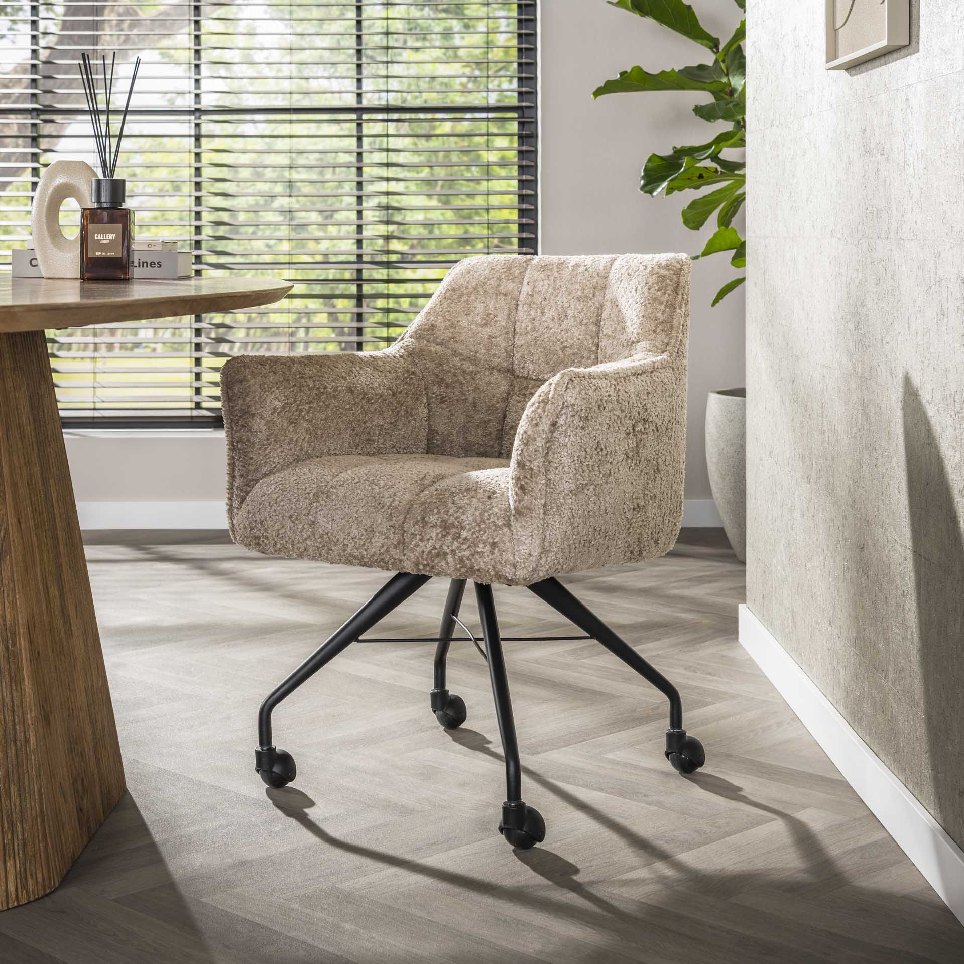 Set van 2 Eetkamerstoelen Tova Stof Alura Zand Met Wieltjes