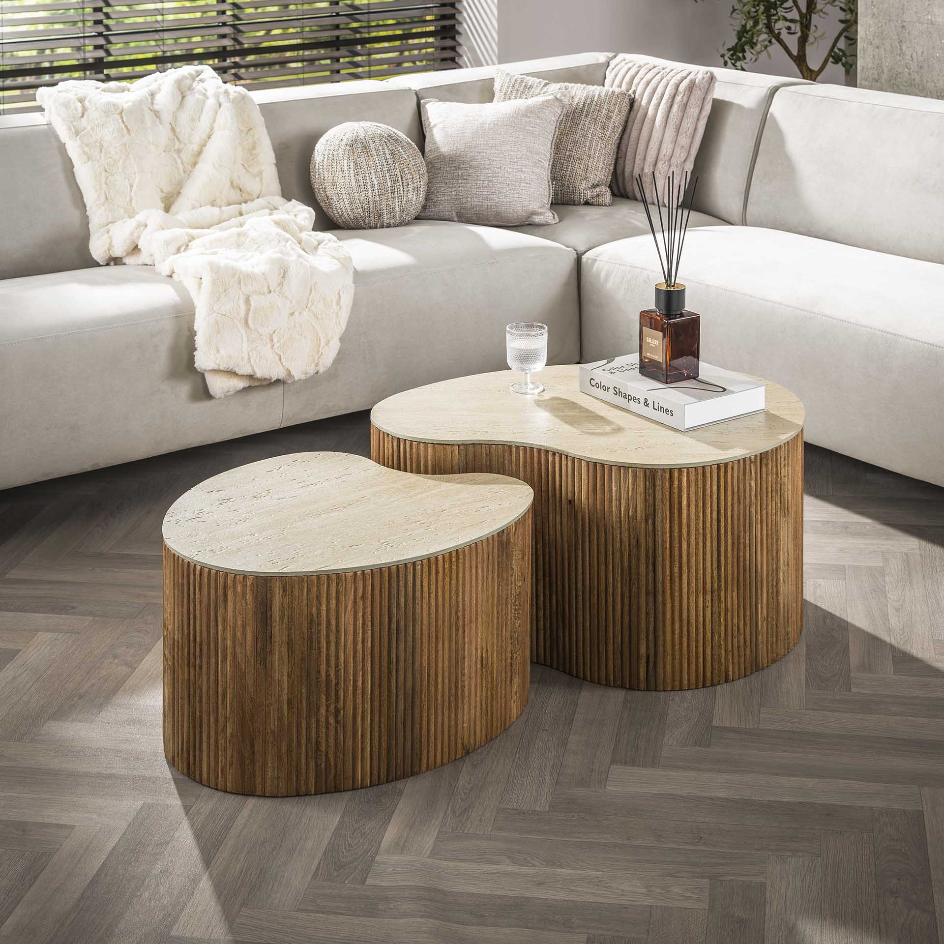 Vento Set van 2 Niervormige Salontafels Mango Zand