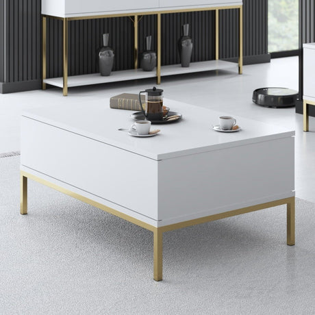 219,95Eenheid prijs /Niet beschikbaarRechthoekige Salontafel Wit Lord 90x60 - Gouden Frame